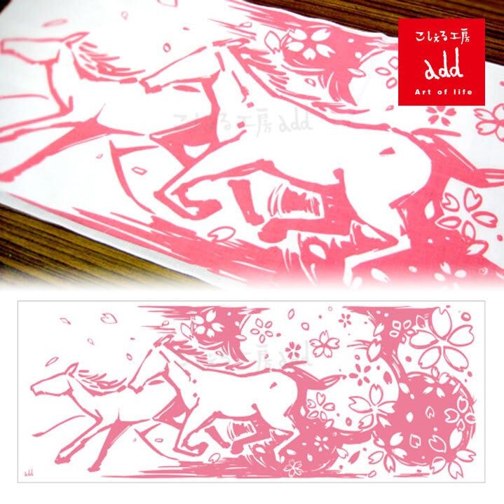 「ウマくいく」「幸運が駆け込んでくる」 馬は古来から縁起がいい動物といわれています。爽やかに春を駆ける馬たちを描いた手拭いです。